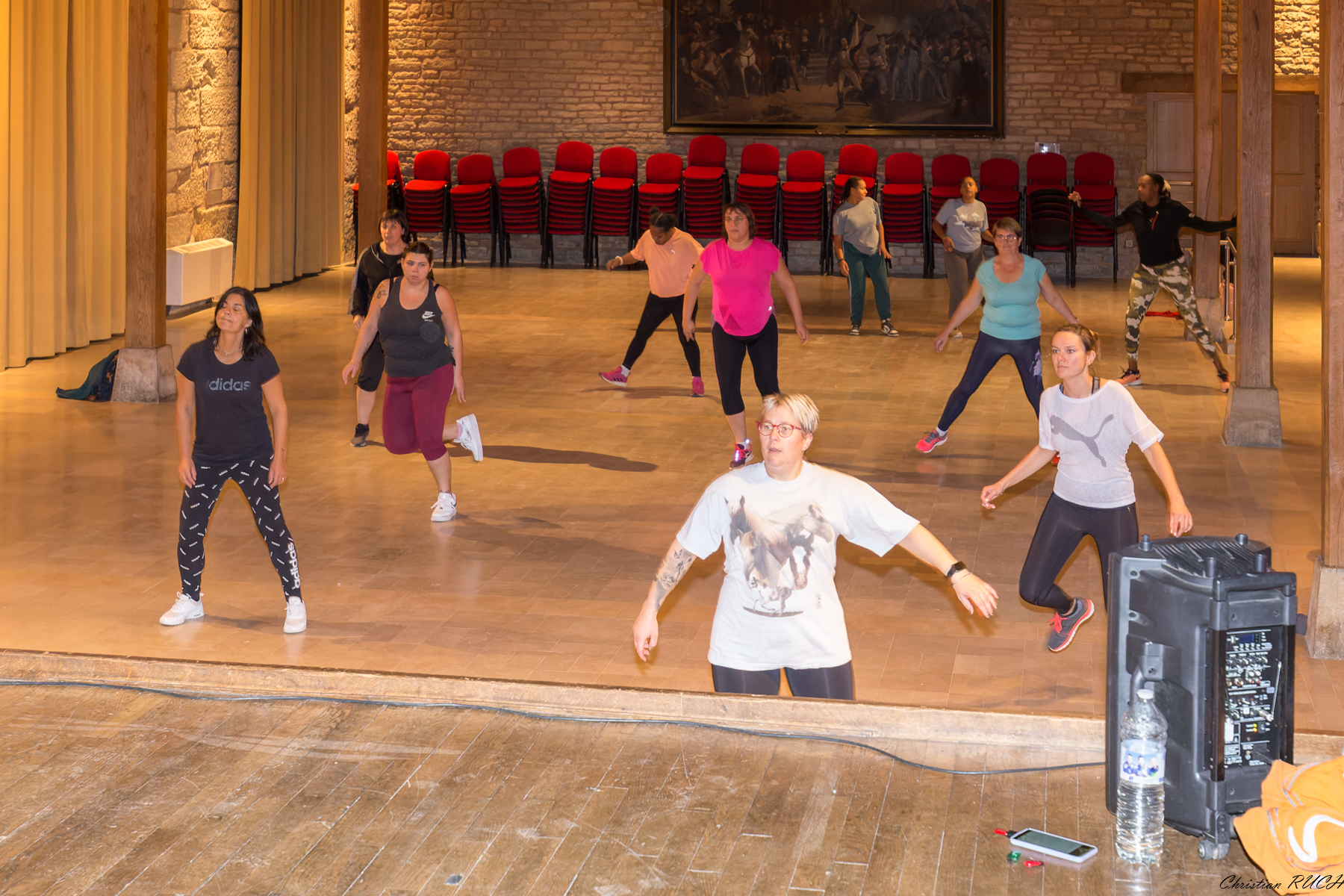 Les séances ont lieu à la salle des fêtes de Bligny, la coach (Gwendoline) profitant de la scène pour montrer les mouvements à exécuter.